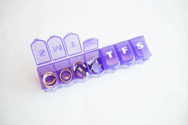 2. Tận dụng hộp đựng thuốc ghi nhớ ngày để cất các món trang sức nhỏ như nhẫn hay hoa tai.