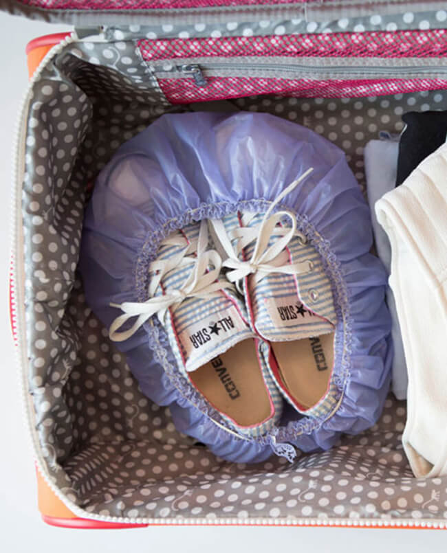 8. Cho giày bẩn vào bên trong chiếc mũ tắm.