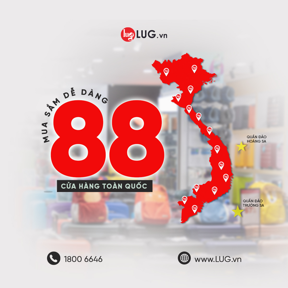 Từ khởi đầu khiêm tốn đến cột mốc 88 cửa hàng và phân phối chính hãng hơn 25 thương hiệu quốc tế, LUG đã khẳng định vị thế dẫn đầu trong lĩnh vực hành lý – phụ kiện du lịch tại Việt Nam. Liên hệ ngay Hotline 1800 6646 để LUG tư vấn cho bạn những mẫu vali - balo chất lượng cao, với chính sách bảo hành lên đến 10 năm toàn cầu!