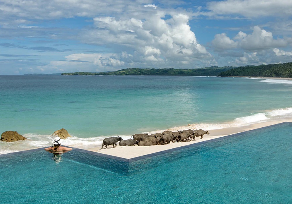 Bãi biển sở hữu bờ cát dài, sóng biển mạnh, rất phù hợp cho các hoạt động thể thao biển và ngắm hoàng hôn. Không gian hoang sơ kết hợp cùng dịch vụ sang trọng tạo nên sức hút đặc biệt cho các cặp đôi, khách honeymoon hoặc du khách tìm kiếm trải nghiệm độc quyền tại Indonesia.