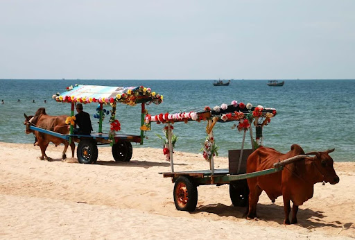 Đến bãi tắm La Gi mà không vào Cam Bình trải nghiệm cảm giác đi xe bò ngắm cảnh là một thiếu sót lớn. Đây là trải nghiệm mang đậm chất miền quê, vừa vui vừa bình dị. Mỗi lượt tham quan thường gói gọn trong 10 phút với bán kính 700m, vừa đủ để bạn chụp được những bức ảnh check-in và ngắm nhìn khung cảnh biển.