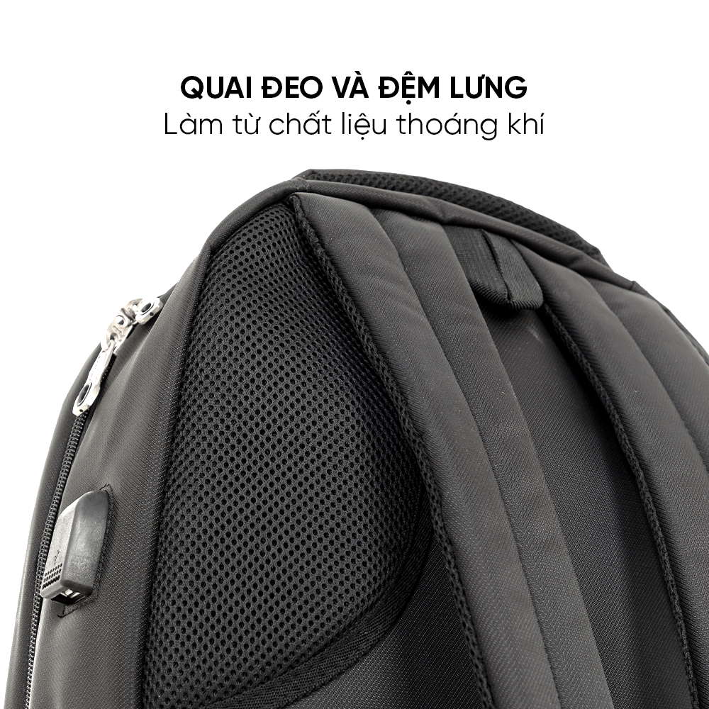 Quai đeo và đệm lưng được làm từ chất liệu thoáng khí, giúp người dùng đeo balo thoải mái trong thời gian dài. Quai đeo có thể điều chỉnh độ dài phù hợp với vóc dáng của người sử dụng.