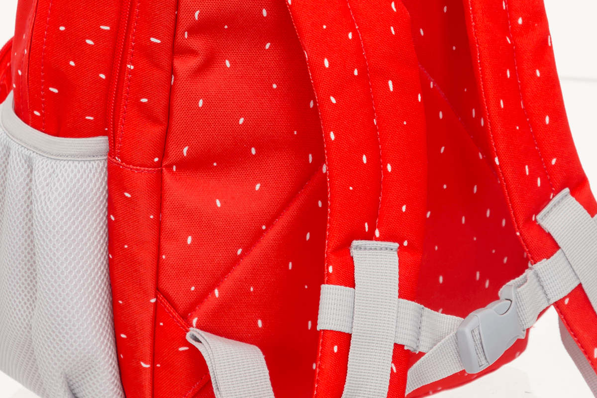 Quai đeo balo may viền chắc chắn, bên trong quai đeo có đệm lót EVA mềm không gây đau vai bé khi đeo trong thời gian dài. Thiết kế bề mặt tiếp xúc phân bố đều trọng lượng balo sang 2 vai, hạn chế tình trạng lệch vai.