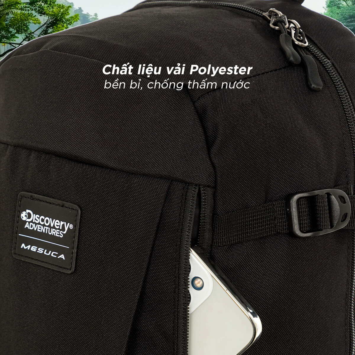 Discovery DHC23813 sử dụng chất liệu vải chính là loại vải Polyester cao cấp có ưu điểm độ bền cực cao, siêu nhẹ, giữ màu tốt, chống mài mòn, và đặc biệt là bề mặt vải trơn mịn trượt nước rất tốt. Do đó Discovery DHC23813 sẽ hạn chế tối đa việc bị nước thấm vào bên trong balo, bảo vệ an toàn cho đồ đạc.