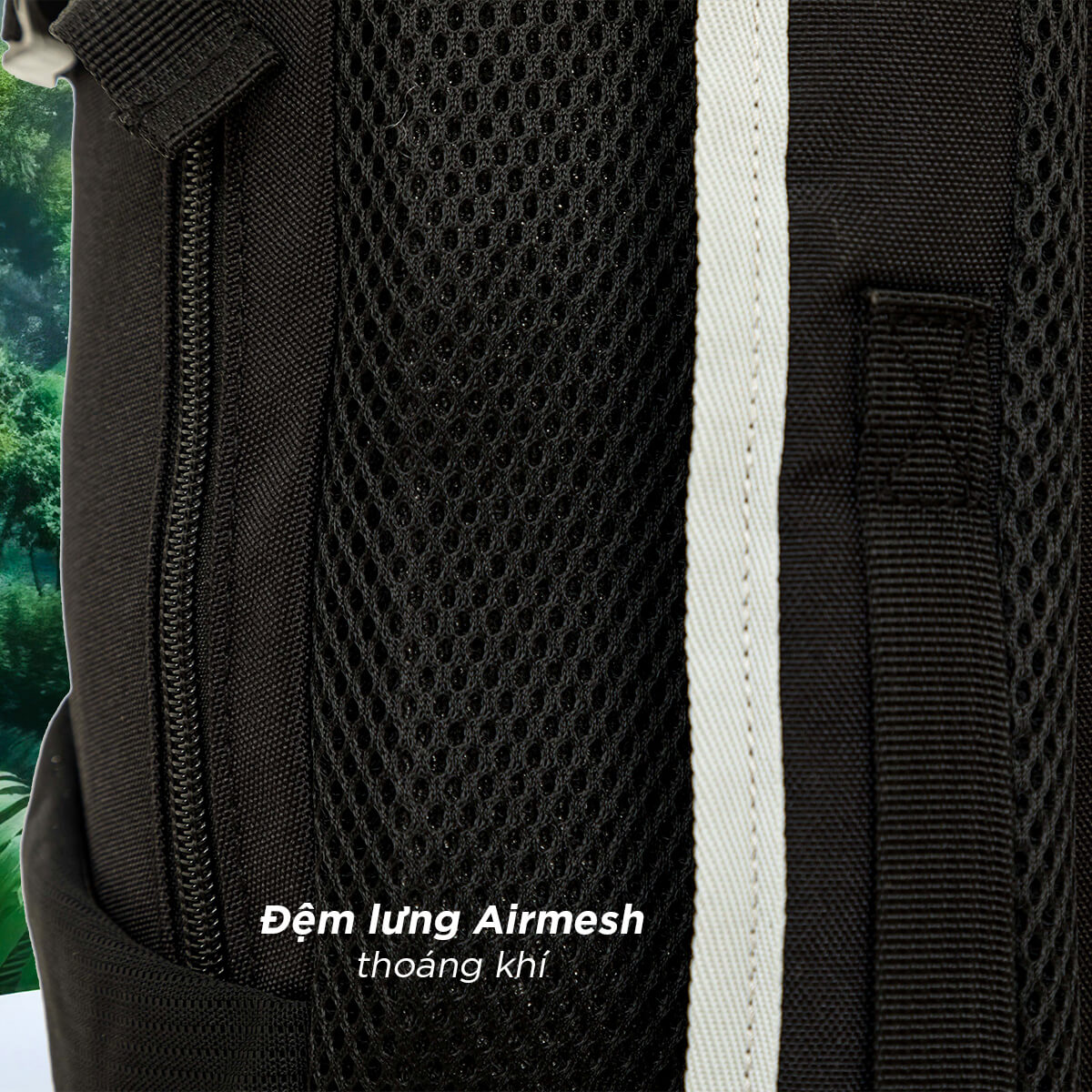 Đệm lưng của balo được thiết kế với lớp đệm PE bên trong, bên ngoài phủ lớp lưới airmesh có tác dụng thoáng khí, thoát hơi nhanh, giảm thiểu việc nóng bức, đổ mồ hôi khi đeo balo trong mùa hè.