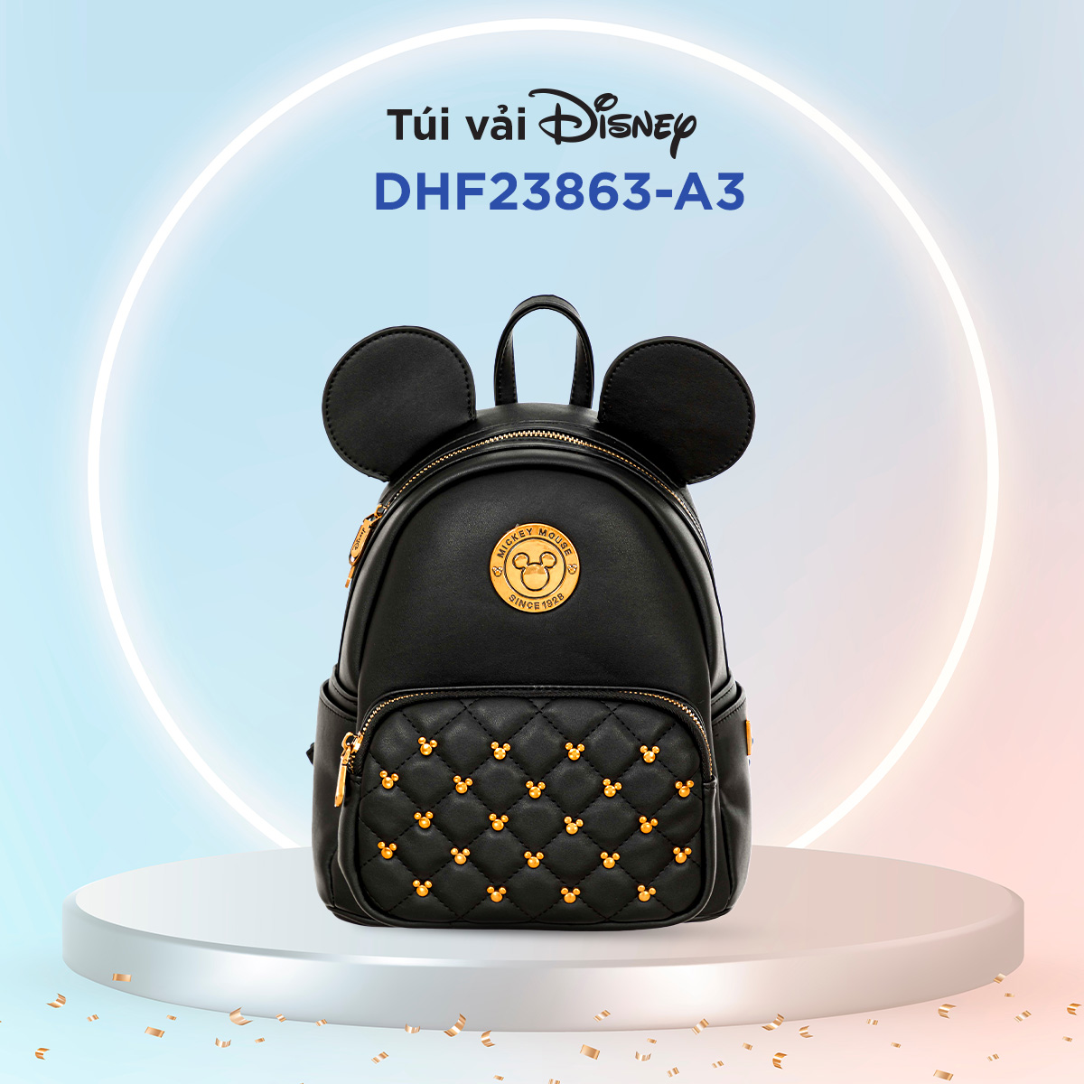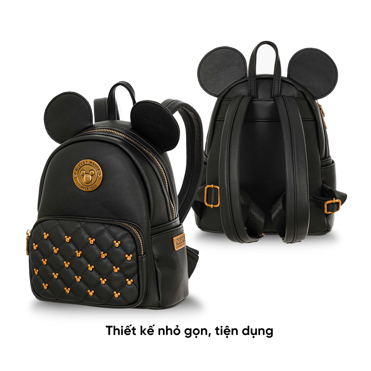 Không dừng lại ở logo Mickey, chiếc balo này còn được đính nhiều biểu tượng Mickey vàng nhỏ xinh ở mặt ngoài, tạo nên một tổng thể hài hòa và sinh động. Những biểu tượng Mickey này không chỉ làm tăng tính thẩm mỹ cho balo mà còn thể hiện sự tinh tế và tỉ mỉ trong từng chi tiết.