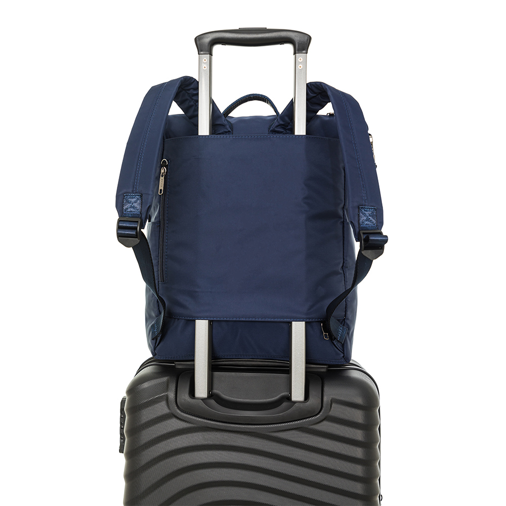 - Mặt sau tích hợp đai gắn vali, thuận tiện khi kết hợp mang hành lý theo cùng vali trong những chuyến đi xa.