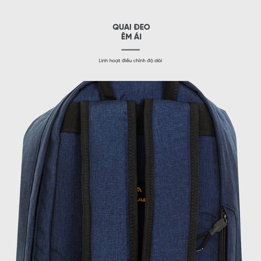 Phần quai đeo được lót đệm êm ái giúp bạn đeo balo trong thời gian dài mà không bị mỏi, ngoài ra quai đeo còn có thể linh hoạt điều chỉnh độ dài tuỳ nhu cầu sử dụng.