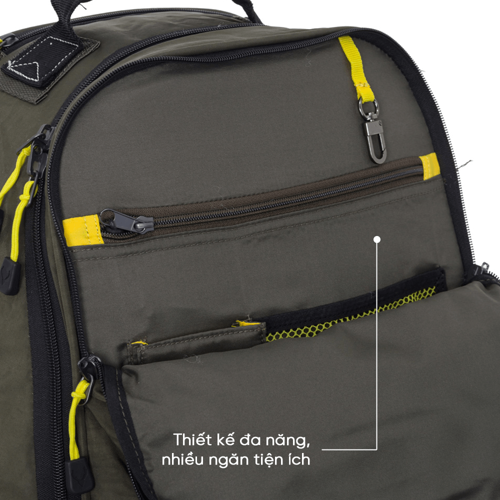 - Số ngăn: 1 ngăn chính, 4 ngăn phụ kiện, 1 ngăn laptop , 1 ngăn ipad, 2 ngăn hông đựng nước