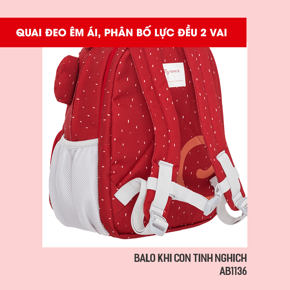 Điểm đắt giá của Balo đi học AB1136 chính là mặt lưng balo được thiết kế cải tiến với những đường gấp ôm sát lưng trẻ, phân tán lực do trọng lượng tác động lên lưng, giảm thiểu tối đa tình trạng gù lưng. Đây cũng là vấn đề mà các bậc phụ huynh rất quan tâm khi chọn mua balo cho bé nhất là balo cho bé đi học