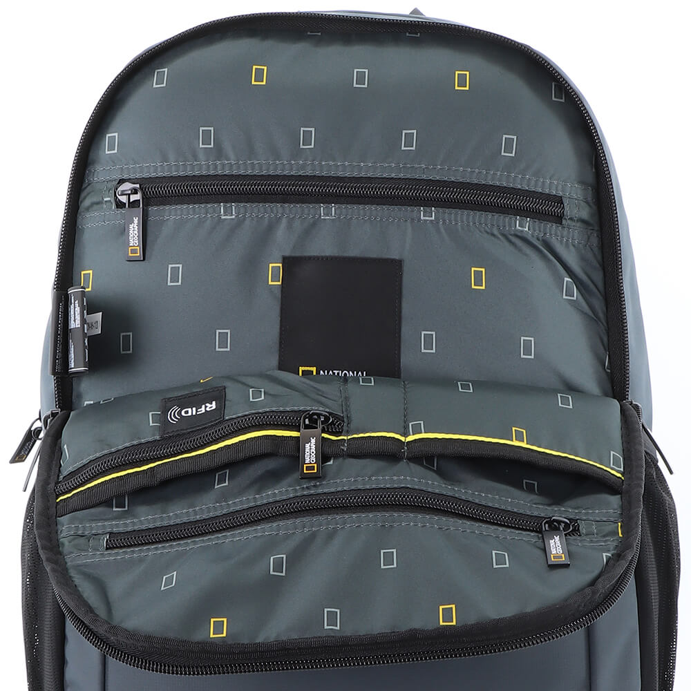 Ngoài ngăn chính lớn, balo còn được trang bị thêm các ngăn phụ bên trong để chứa máy tính bảng, điện thoại, laptop,.. Bên ngoài có ngăn zip phụ hỗ trợ thêm nhu cầu chứa đựng khác.