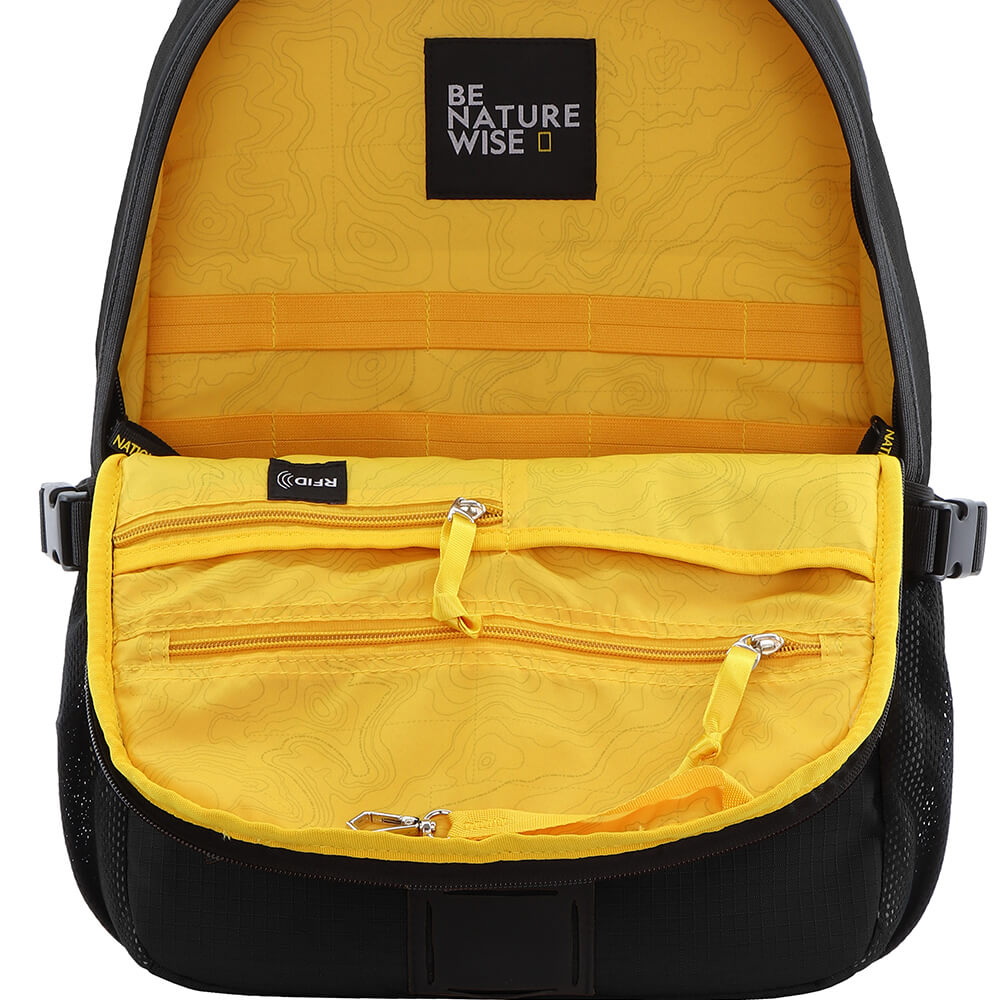 Ngoài ngăn chính lớn, balo còn được trang bị thêm các ngăn phụ bên trong để chứa máy tính bảng, điện thoại, laptop,.. Bên ngoài có ngăn zip phụ hỗ trợ thêm nhu cầu chứa đựng khác.