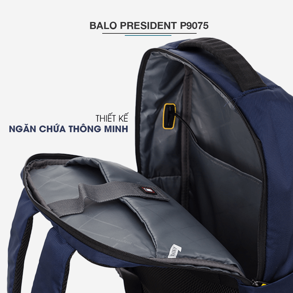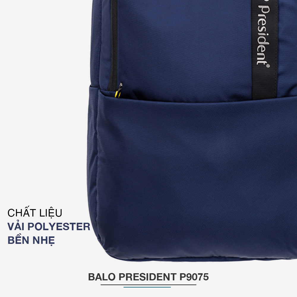 Balo President P9075 được hoàn thiện bởi chất liệu vải Polyester bền nhẹ có khả năng trượt nước chống thấm tối ưu cùng khả năng hạn chế bám bụi giúp sản phẩm luôn bền đẹp trong quá trình sử dụng.