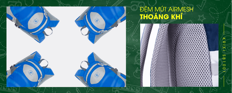 Đệm mút airmesh ôm sát lưng dạng túi khí êm ái khi sử dụng, tránh việc gây nóng lưng và tiếp xúc giữa lưng và các đồ vật cứng trong balo gây hiện tương đau, mỏi lưng cho bé.