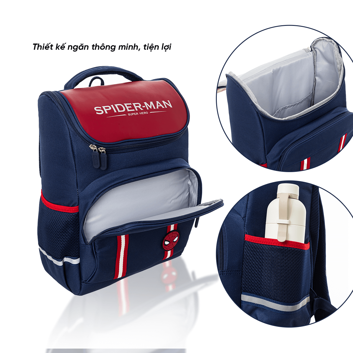 Spider Man B26039-A2X được thiết kế với 1 ngăn chính rộng rãi và nhiều ngăn phụ tiện ích, giúp bé dễ dàng sắp xếp sách vở, hộp bút, chai nước, đồ cá nhân…
