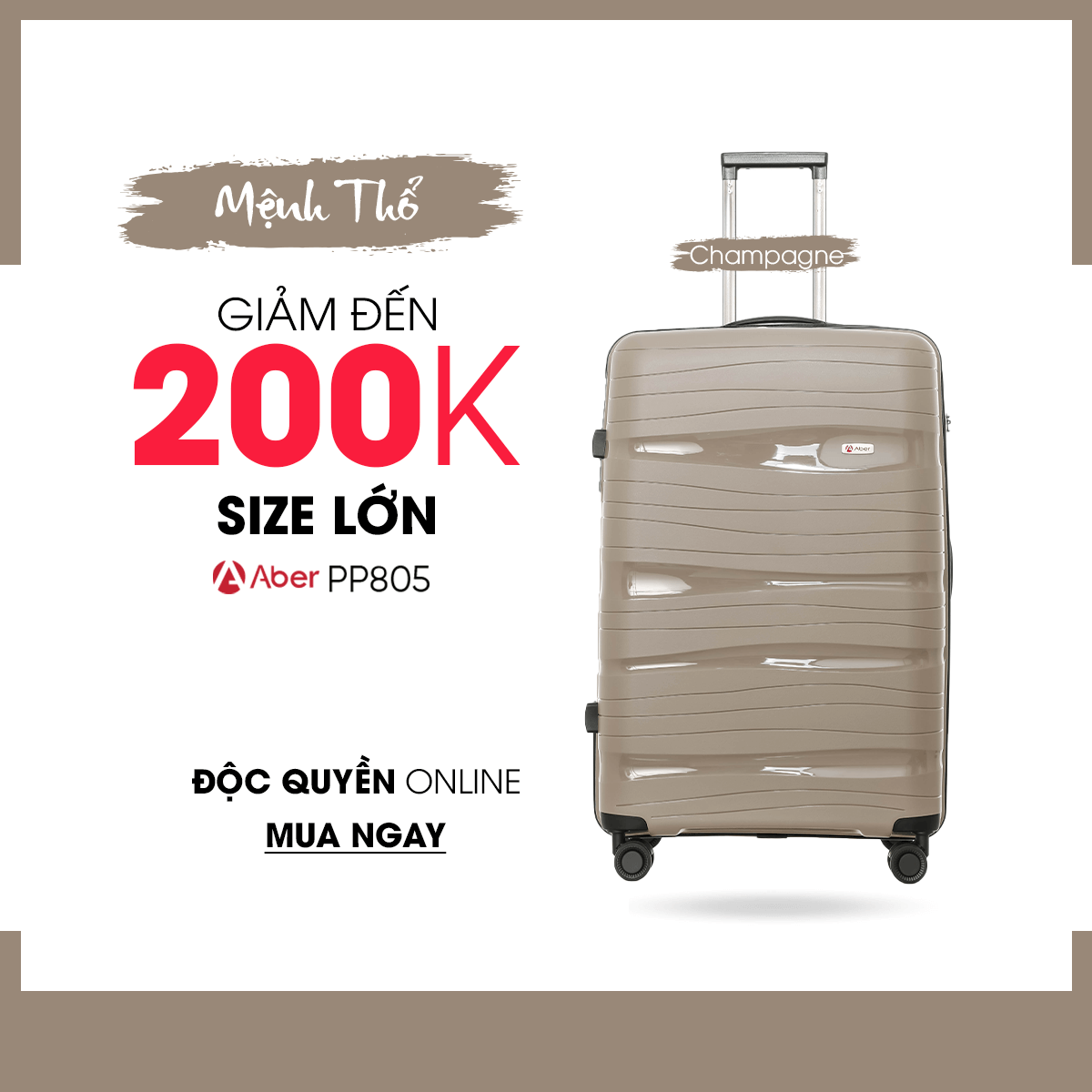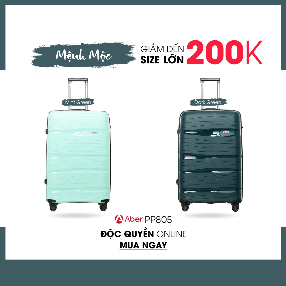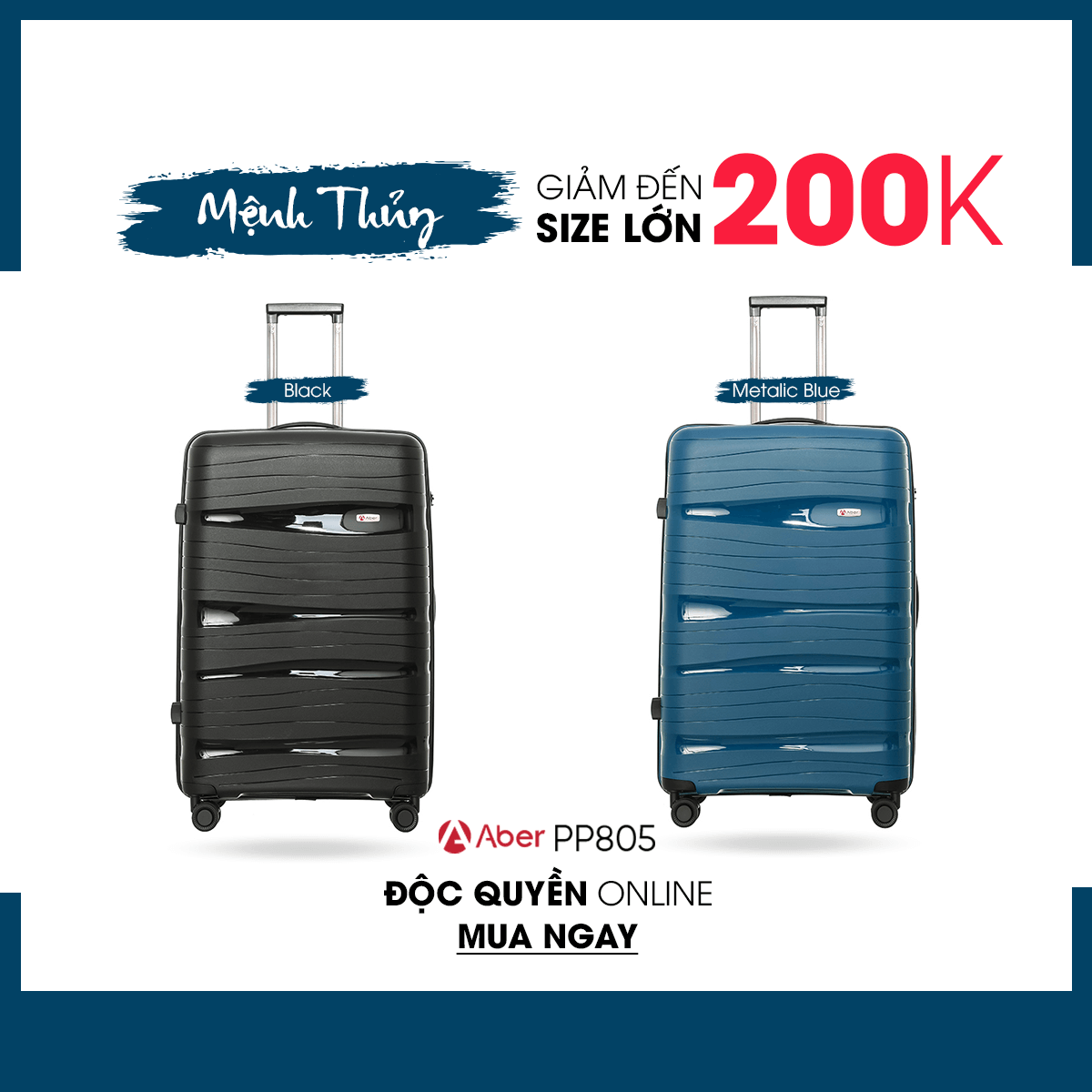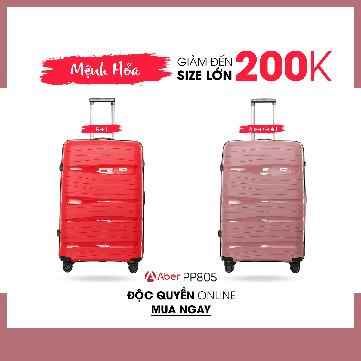 Sản phẩm vali PP805 mới ra mắt với 8 gam màu nổi bật, giúp bạn thoải mái lựa chọn theo mệnh, theo sở thích,...Hiện sản phẩm đang có chương trình khuyến mãi giảm giá 50% cho cả 3 size chỉ từ 1.190K. Riêng đối với size 24 giảm thêm 100K, và size 28 giảm thêm 200K. Chương trình chỉ áp dụng đối với hình thức online, tuy nhiên khi mua sản phẩm bạn sẽ được ưu đãi miễn phí ship.