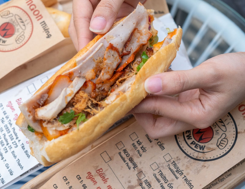 PewPew là một quán bánh mì ngon Bình Thạnh được nhiều người biết đến. Bánh mì ở đây được chế biến với nhiều loại nhân khác nhau, từ bánh mì truyền thống đến bánh mì biến tấu. Với đa dạng kích thước, nhân thức ăn và loại bánh mì, PewPew mang đến nhiều lựa chọn với các mức giá đa dạng cho nhu cầu ăn sáng của các thực khách. Đặc biệt, quán nổi tiếng với món bánh mì xíu mại trứng muối thơm ngon độc đáo.