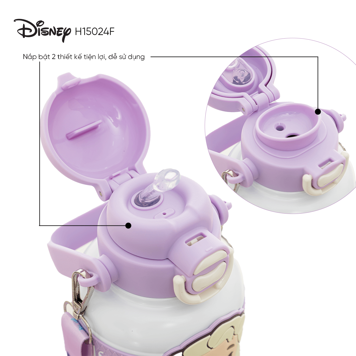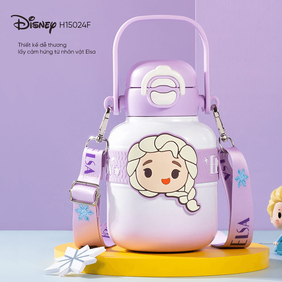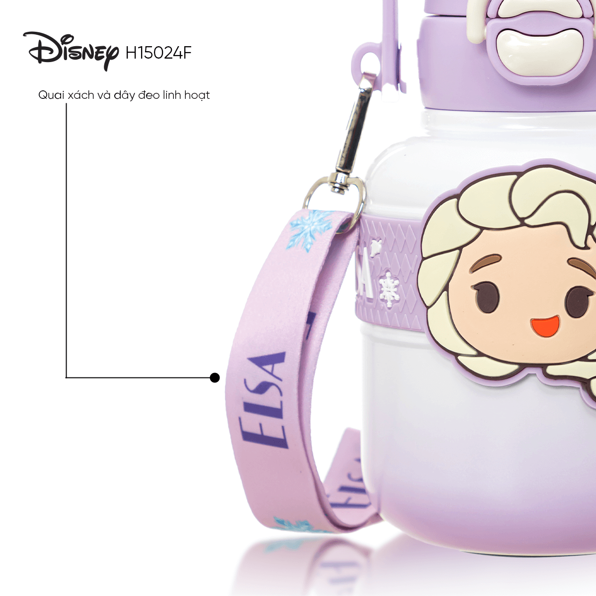 Bình nước Disney H15024F nổi bật với hình ảnh nàng Elsa dễ thương, gắn liền với tuổi thơ của bao bé gái. Tông màu tím nhạt kết hợp cùng chi tiết dây đeo in họa tiết bông tuyết mang đến cảm giác vừa ngọt ngào vừa mát lạnh, đúng tinh thần của “Nữ hoàng Băng giá”.
