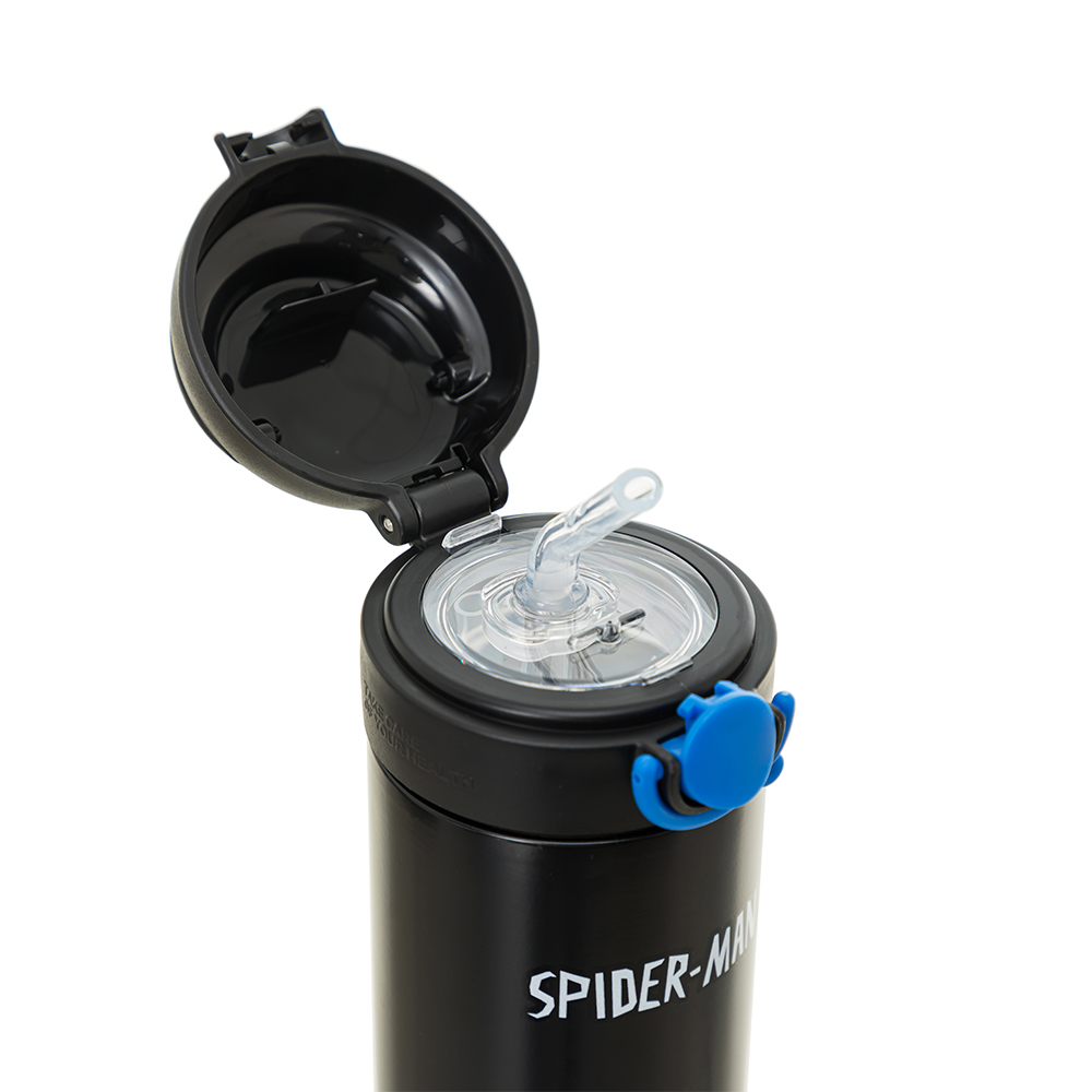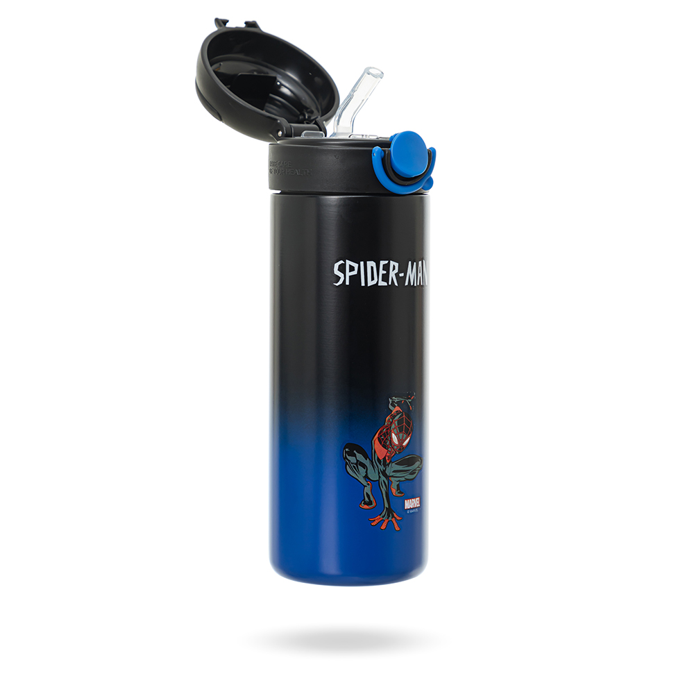 Bình nước được trang trí bằng hình ảnh Spider-Man mạnh mẽ, tạo cảm hứng cho bé thêm năng động, thích thú khi mang theo đến trường, đi chơi hay các buổi dã ngoại.