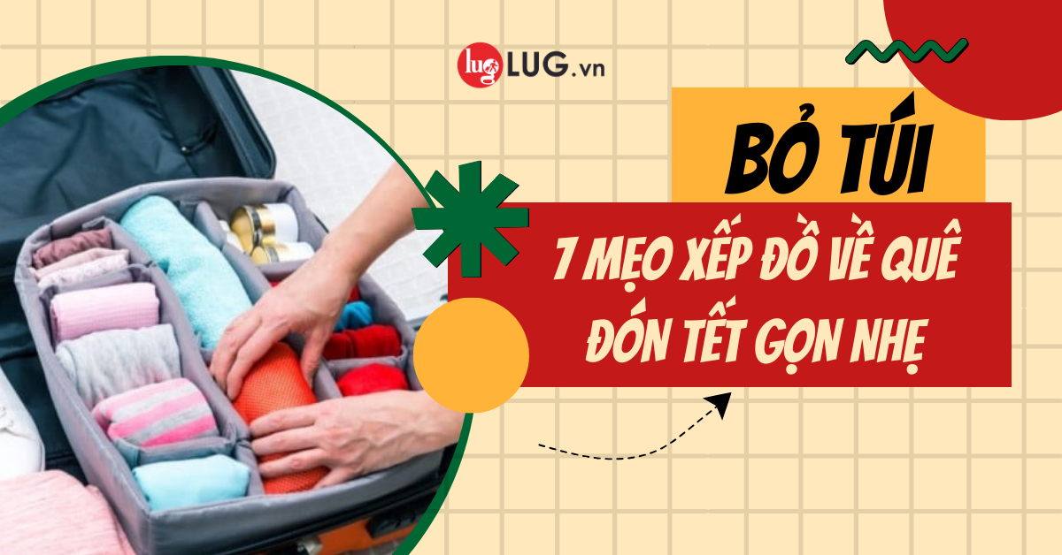 Tết đến xuân về, người người nhà nhà nô nức chuẩn bị hành lý về quê ăn tết, nào là quà tết, quần áo, giày dép,… vậy làm sao chứa hết trong cùng 1 vali? Cùng LUG bỏ túi 7 mẹo sắp xếp hành lý gọn nhẹ, tiết kiệm không gian để vali vừa gọn gàng, vừa đem theo đầy đủ đồ dùng cần thiết.