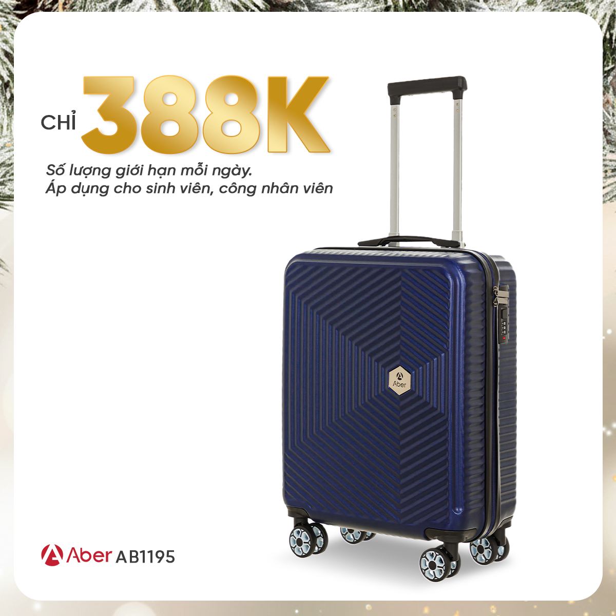 Trong tháng 12 này, LUG triển khai chương trình ưu đãi đồng hành cùng sinh viên, công nhân viên chức nhà nước và người dân có thu nhập thấp với mức giá cực kỳ ưu đãi. Khách hàng thuộc các nhóm trên có thể sở hữu vali chỉ từ 388.000đ, áp dụng cho hai dòng sản phẩm Aber AB1195 và Lusetti LS1185.