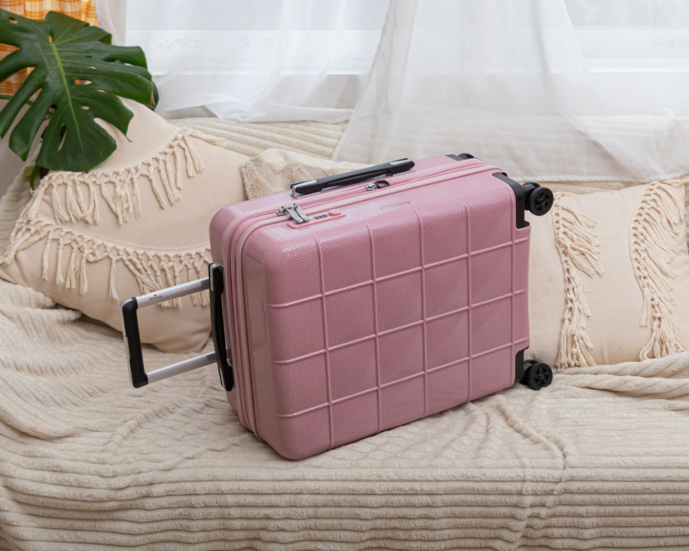 Tham khảo vali thương hiệu quốc tế Echolac PC185 với bánh xe cao su chống sốc hiện đại, được sản xuất từ nhà máy Hinomoto.
