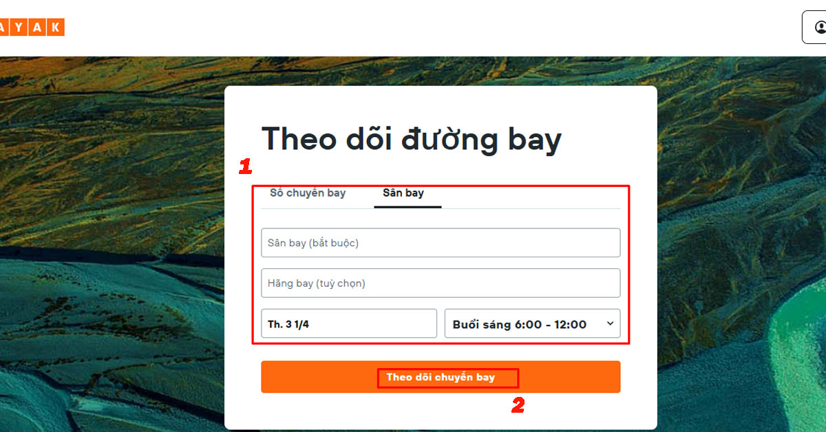 - Kayak: Truy cập “https://www.vn.kayak.com/tracker” và đăng nhập tài khoản. Tiếp theo, bạn điền các thông tin được yêu cầu ở mục “Theo dõi đường bay”, sau đó nhấn vào nút “Theo dõi chuyến bay” để kiểm tra.
