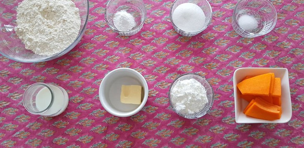 Nguyên liệu chuẩn bị làm bánh bao bí đỏ