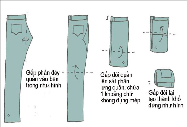 - Cuộn từ dưới lên: Bắt đầu từ gấu quần hoặc viền áo, cuộn chặt quần áo theo chiều từ dưới lên, tạo thành một ống tròn.