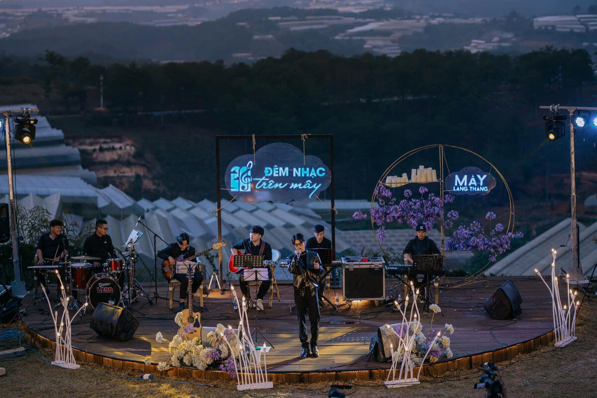 Mây Lang Thang là một trong số ít quán cafe ở Đà lạt đầu tư dàn nhạc Acoustic chuyên nghiệp với những ca sĩ khách mời nổi tiếng. Chủ đề ca nhạc của quán sẽ không được cố định mà thay đổi liên tục để khán giả luôn cảm thấy thú vị và không buồn chán. Các buổi trình diễn âm nhạc tại Mây Lang Thang thường diễn ra vào thời điểm cuối tuần hoặc những dịp lễ, tế. Mây luôn mời các nghệ sĩ nổi tiếng về biểu diễn từ các ca sĩ trẻ đến những cái tên gạo cội như Lệ Quyên, Vũ Cát Tường, Amee, Trương Thảo Nhi, Thanh Lam,...