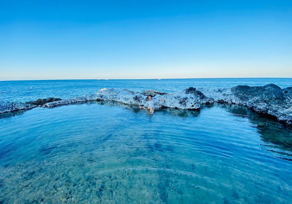 Hồ cá Làng Dương hiện lên như một bức tranh hoang sơ giữa biển trời Phú Quý, nơi từng lớp đá xếp chồng tạo nên dáng hình vừa mộc mạc vừa kỳ vĩ. Mỗi khung hình ghi lại tại đây đều mang màu xanh ngọc trong vắt của biển hòa cùng sắc đá rêu phong, gợi cảm giác vừa lạ vừa thân quen. Chính sự nguyên sơ và đường cong tự nhiên của hồ đã biến nơi này thành một tọa độ “bắt sáng” tuyệt đẹp cho những ai yêu nhiếp ảnh và đam mê khám phá.