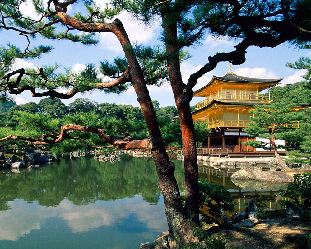 Đền Kinkakuji (Lâu đài Vàng): Ngôi đền nổi tiếng với phần thượng tầng được bọc bằng vàng lá nguyên chất cùng nhiều quốc bảo quý giá.