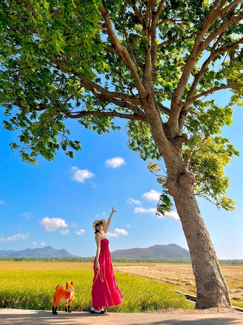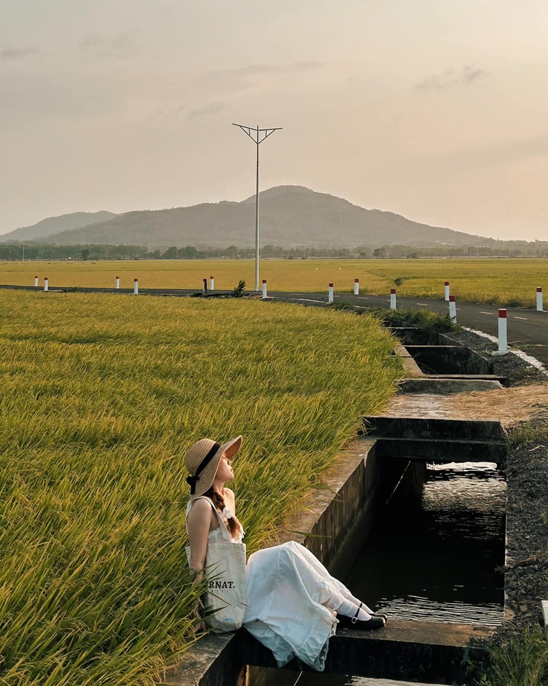 Giữa bầu trời trong xanh, cánh đồng lúa phất phơ trong gió tạo nên một không gian thanh bình và thơ mộng. Buổi sáng, bạn có thể ngắm bình minh len lỏi qua những cánh lúa, trong khi chiều về, ánh hoàng hôn rực rỡ phủ lên cánh đồng một vẻ đẹp huyền ảo. Không khí trong lành cùng sự tĩnh lặng nơi đây giúp bạn tận hưởng trọn vẹn những giây phút thư giãn.