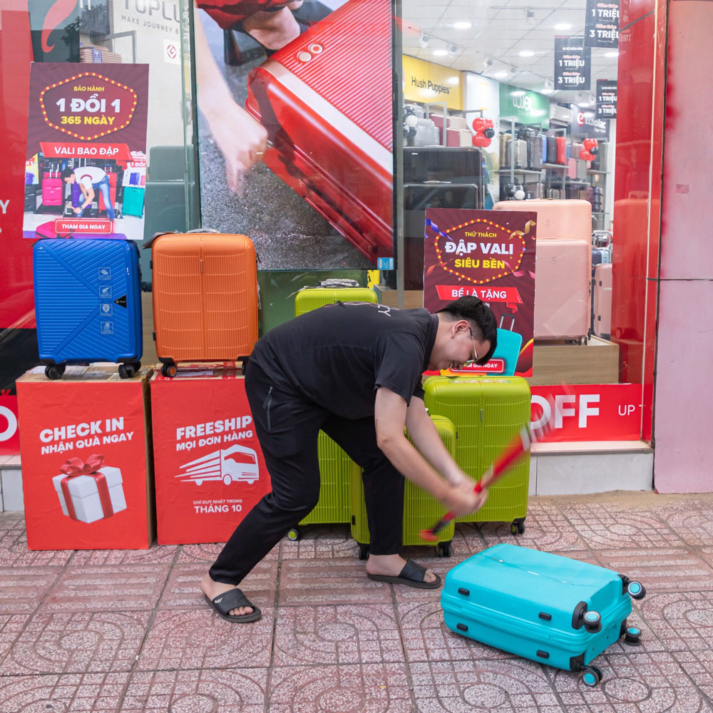 Hiện tại, chuỗi hệ thống LUG.vn trên toàn quốc đều đã được bố trí khu vực đập test siêu phẩm vali chống vỡ MP010. Bất kỳ khách hàng nào cũng có thể tham gia vào chương trình và nhận về phần thưởng là 1 chiếc vali mới 100% khi vượt qua thử thách. Lưu ý: Thể lệ tham gia sẽ được phổ biến khi quý khách đăng ký tại cửa hàng, giải thưởng chỉ dành cho những khách hàng làm đúng theo yêu cầu từ ban tổ chức.