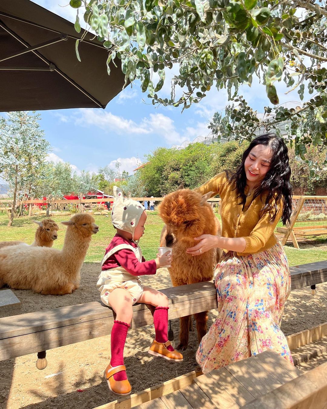 Nhắc đến nông trại, chắc chắn không thể thiếu những người bạn động vật rồi! Chika Farm Đà Lạt là “ngôi nhà chung” của những chú cừu, thỏ, dê và lạc đà Alpaca siêu dễ thương. Các bé được thả tự do trong khuôn viên rộng lớn, bao quanh là hàng rào gỗ phong cách vintage, tạo nên khung cảnh yên bình như trong phim.