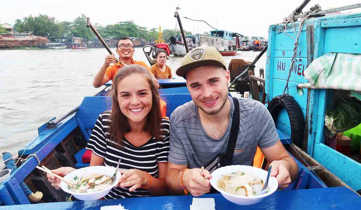 - Trải nghiệm ăn sáng và thưởng thức đặc sản địa phương đầy thú vị ngay trên thuyền tại chợ nổi Cái Răng.