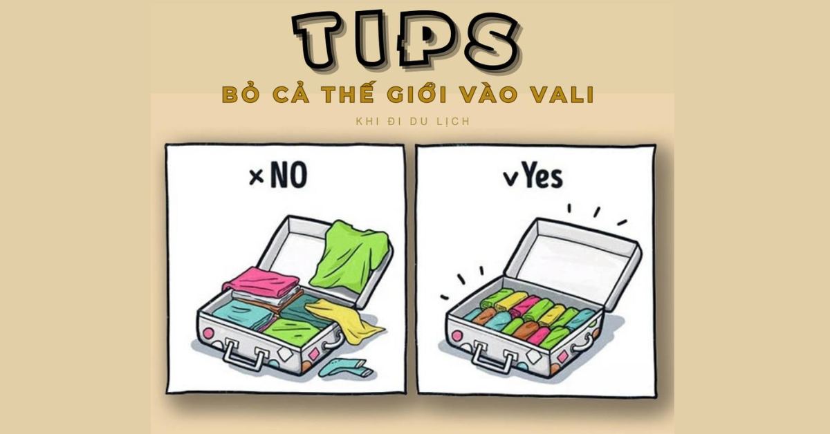 Đi du lịch, bất cứ bạn nào cũng muốn mang thật nhiều đồ để diện và chụp thật nhiều bức ảnh kỷ niệm. Thế nhưng cách chọn và sắp xếp sai lầm khiến cho vali chật đi và bạn chẳng thể mang dc gì cần thiết cả. Bài viết này sẽ giúp cho bạn chọn vật đụng sao cho phù hợp và sắp xếp đồ thật gọn vào vali.