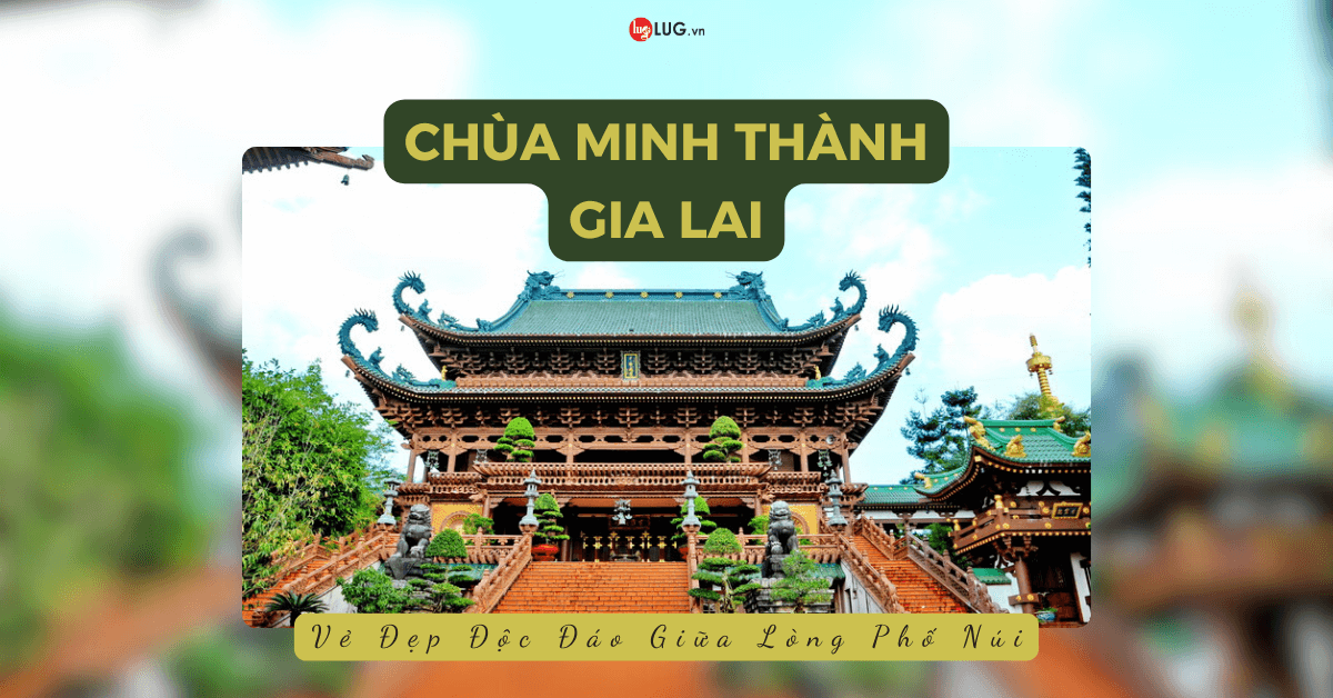 Phố núi Gia Lai không chỉ có những cánh rừng hùng vĩ, đồi cà phê ngút mắt, biển hồ nên thơ, đồi chè xanh ngút ngàn hay trang sử hào hùng của dân tộc, mà còn có ngôi chùa độc đáo mang tên Minh Thành. Chùa Minh Thành Gia Lai với kiến trúc phảng phất hơi thở của xứ Phù Tang, với những mái chóp uốn cong đặc trưng, là một điểm du lịch không thể bỏ qua khi đến với Gia Lai. Cùng LUG khám phá vẻ đẹp kì diệu của chùa Minh Thành qua bài viết dưới đây.