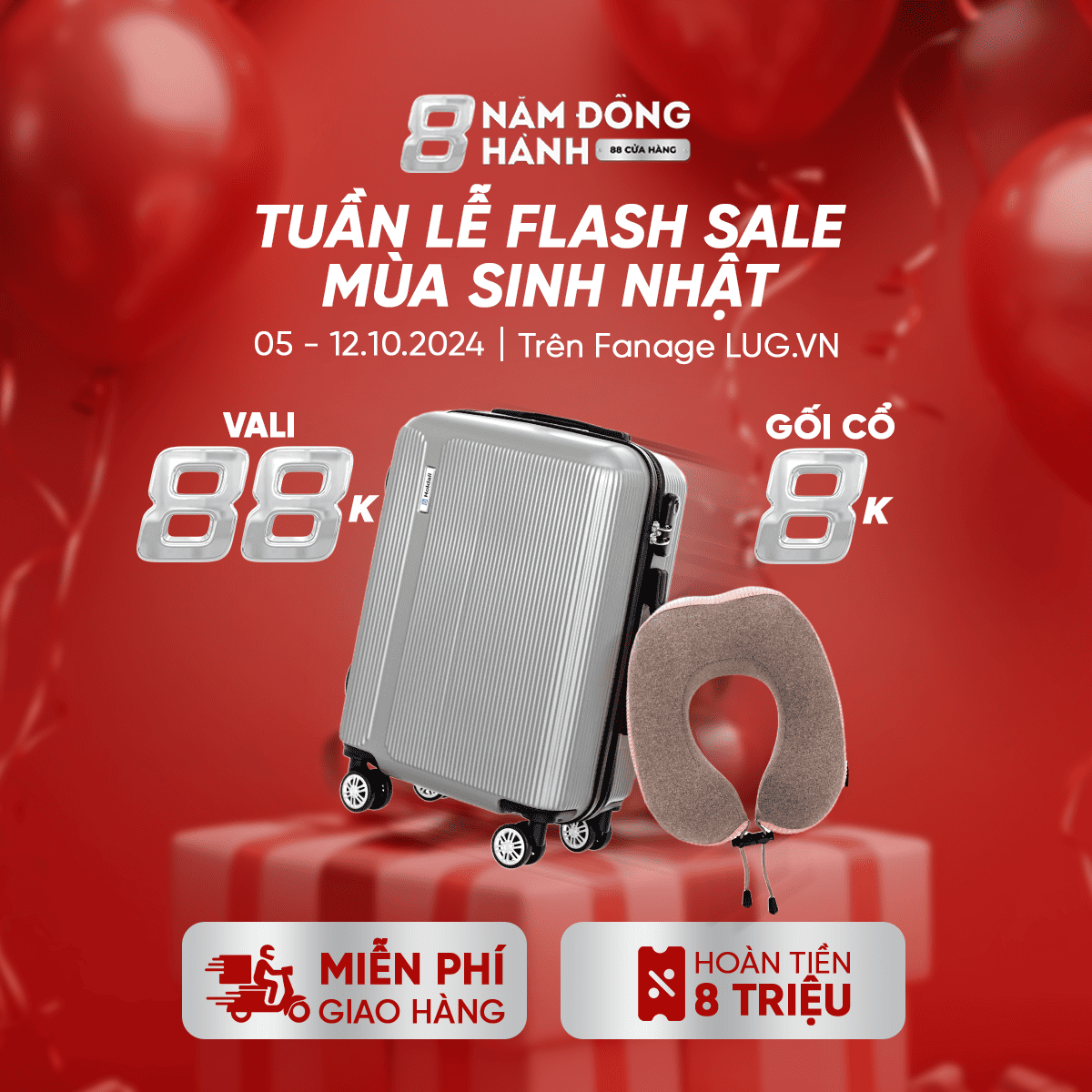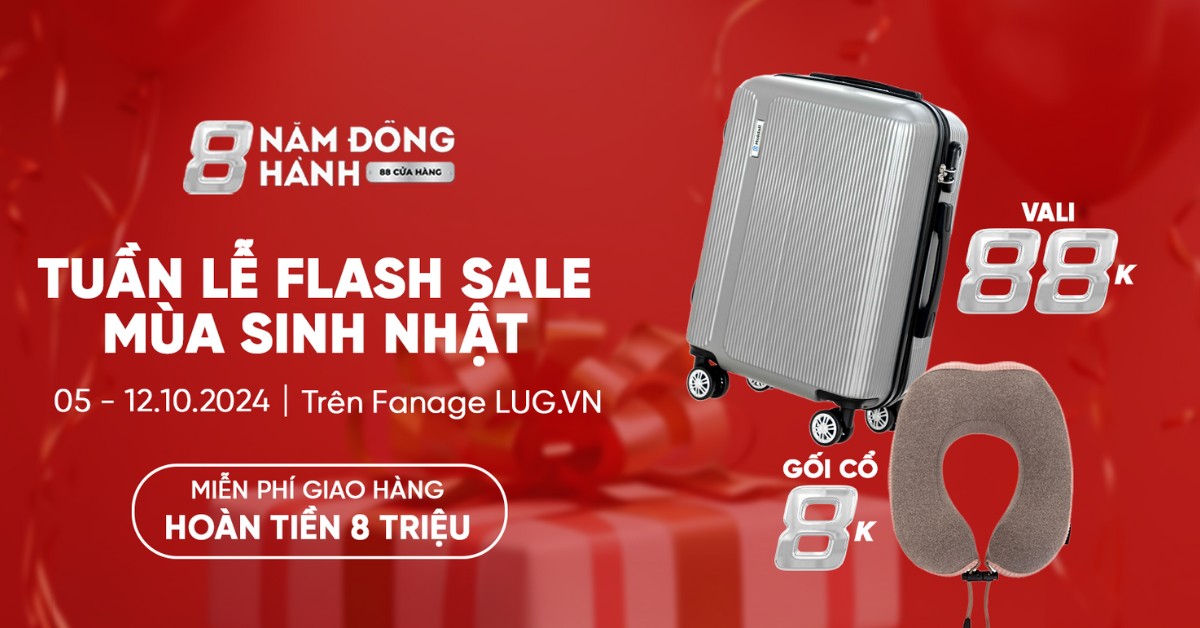 LUG chào đón sinh nhật 8 tuổi bằng chuỗi livestream 8 ngày với hàng loạt ưu đãi siêu hấp dẫn và những món quà bất ngờ không thể bỏ lỡ! Nếu bạn là tín đồ của những sản phẩm vali, balo và phụ kiện du lịch chất lượng, thì đây chính là cơ hội tuyệt vời để săn được những món đồ yêu thích với giá cực kỳ ưu đãi.