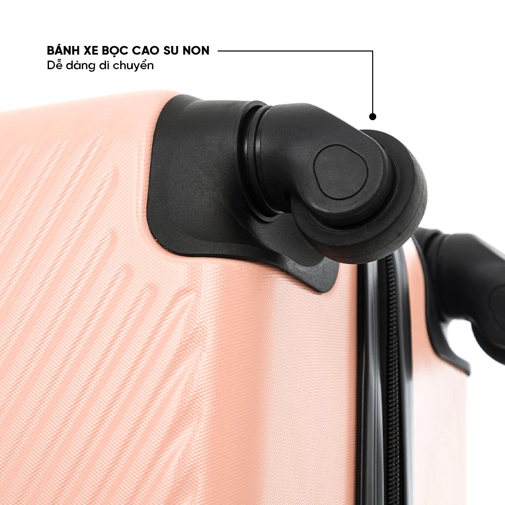 Trang bị bánh xe xoay đa chiều, bọc cao su non cao cấp, vali lăn êm ái, hạn chế tối đa tiếng ồn, giảm rung lắc khi di chuyển trên nhiều địa hình khác nhau. Bạn có thể thoải mái kéo vali trong sân bay, trên đường phố đông đúc hay sàn gồ ghề mà không gặp khó khăn.