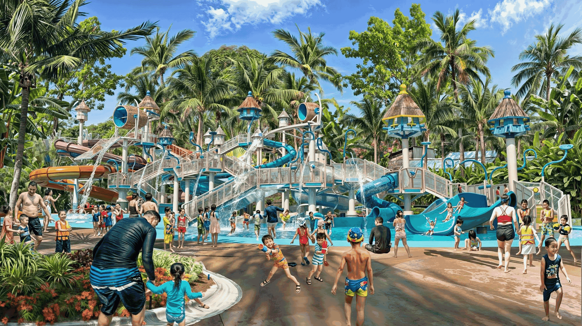 Khu vực dành cho trẻ em được thiết kế riêng với màu sắc sinh động, hệ thống trò chơi an toàn và phù hợp nhiều độ tuổi. Gia đình có thể cùng nhau thư giãn tại dòng sông phiêu lưu Action River hoặc tận hưởng các khu vui chơi nhẹ nhàng, tạo nên hành trình trải nghiệm trọn vẹn cho mọi thành viên.