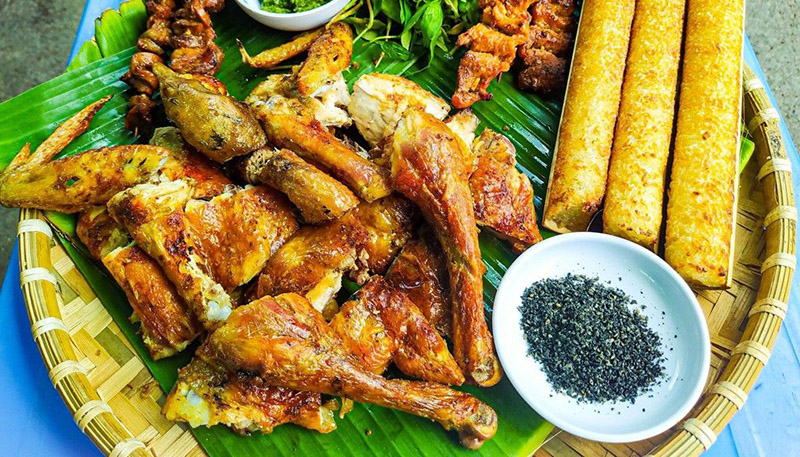 Cơm lam được nấu trong những ống tre, ống nứa tươi rồi mang ủ vào bếp củi cho đến khi chín đều. Bóc vỏ ngoài ra sẽ thấy cơm được bọc trong lớp màng tre, vị dẻo và mùi rất thơm. Còn gà nướng phải là gà chạy bộ, gà bản, thịt chắc, thơm, ít mỡ, tẩm ướp với đủ các loại gia vị mật ong, tỏi, sả, ngũ vị hương… Một miếng cơm lam ăn cùng thịt gà nướng chấm muối lá é chắc chắn sẽ là trải nghiệm ẩm thực khó quên dành cho bạn.