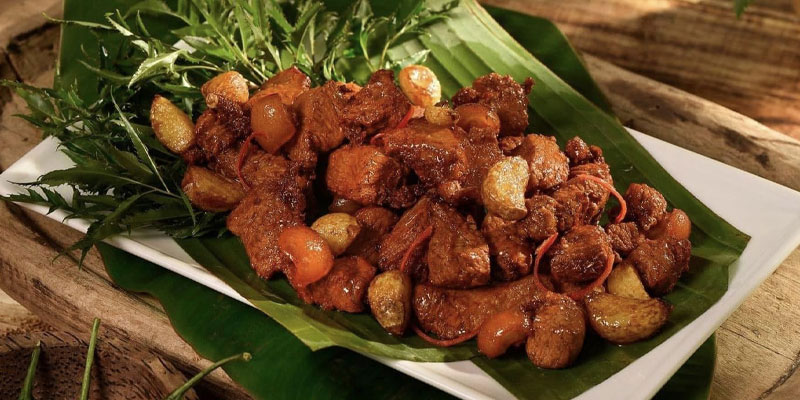Thêm một món đặc sản nữa mà bạn không nên bỏ qua khi đến Mộc Châu đó là Bê chao. Quá trình chế biến bê chao thường bắt đầu bằng việc lựa chọn thịt bê tươi ngon, sau đó thái thành từng miếng nhỏ. Tiếp theo, thịt bê sẽ được hấp chín hoặc nướng trên lửa than nóng, cho đến khi chín mềm và thơm ngon.