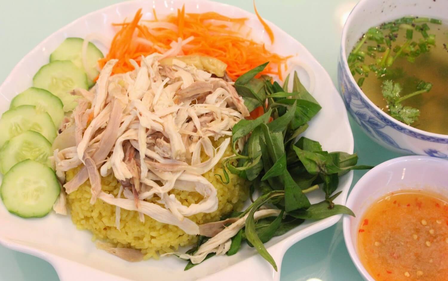 Nhắc đến đặc sản Phú Yên không thể không nhắc đến cơm gà Phú Yên. Cơm gà Phú Yên với hạt cơm mềm tơi được nấu cùng nước luộc gà kết hợp với màu vàng bắt mắt từ nghệ. Món ăn được bày trí bắt mắt với thịt gà xé nhỏ, màu xanh của rau răm,...Ngoài ra món ăn sẽ bắt vị hơn với nước súp, nước mắm chấm được pha vừa ăn. Đừng quên thử ngay món này khi đặt chân đến Phú Yên nhé!