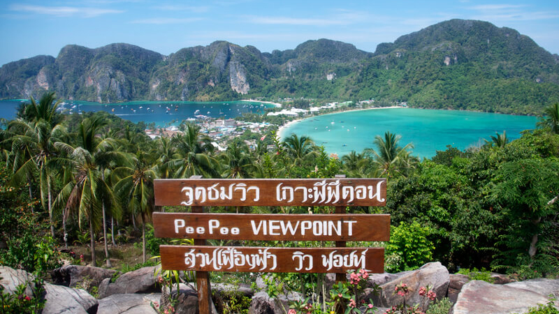 Koh Phi Phi Don là một ngôi làng xanh mướt, trong lành, thu hút nhiều du khách mỗi khi ghé thăm. Từ Phi Phi Viewpoint, bạn có thể chiêm ngưỡng dải cát trắng mịn cùng khung cảnh làng và hai vịnh tuyệt đẹp - nơi lý tưởng để lưu lại những bức ảnh sống ảo lung linh. Hành trình từ đảo trung tâm đến đây mất khoảng 30-40 phút. Thời điểm tuyệt vời nhất để chụp ảnh và ngắm cảnh là vào buổi chiều khi ánh nắng lên rực rỡ.