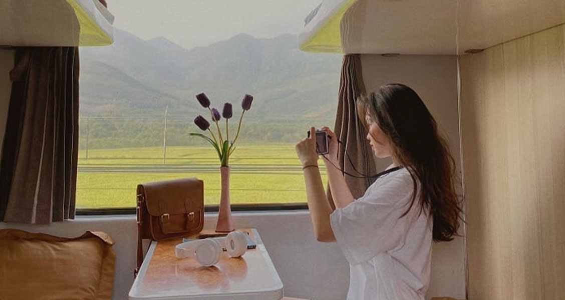Với phương tiện tàu hỏa, bạn sẽ được thoải mái ngắm nhìn quan cảnh hai bên đường và chụp những tấm ảnh thật đẹp. Các cửa kính trên xe tàu hỏa rất to và trong suốt, khoang ngồi thì rộng rãi, đảm bảo cho bạn các góc chụp đẹp hơn nhiều so với việc di chuyển bằng ô tô hay xe khách.