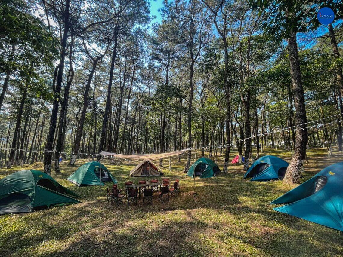 Rừng thông Ba Vì hiện lên với vẻ đẹp hùng vĩ, với những dải cây xanh mát và cỏ hoa lá tạo nên một không gian trong lành và bình yên, lý tưởng cho việc tổ chức các buổi cắm trại ý nghĩa.