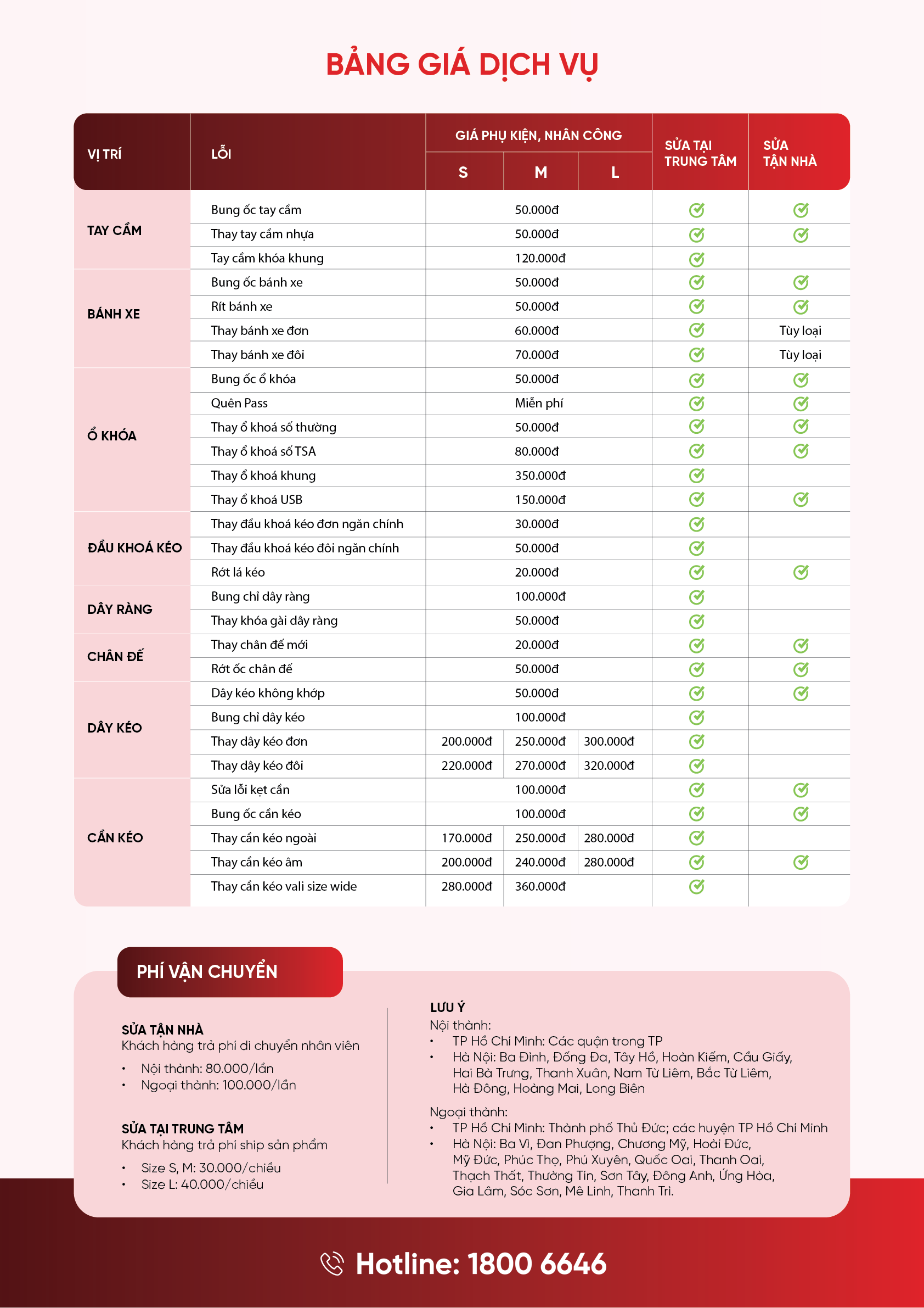 Bảng giá dịch vụ sửa chữa vali tận nhà tại LUG.vn