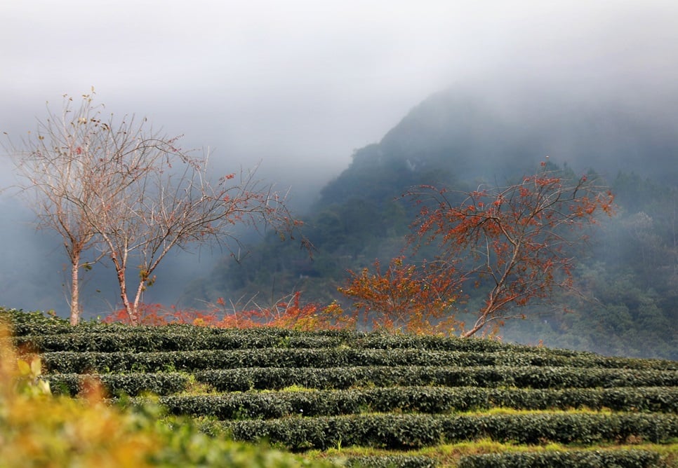 - Đông về, từ tháng 12 đến tháng 1, mang theo cái lạnh buốt giá đặc trưng của vùng cao. Khi nhiệt độ hạ xuống, đôi khi tới âm 2 - 3 độ C, đồi chè Ô Long chìm trong sương mù dày đặc, và nếu may mắn, bạn sẽ được chiêm ngưỡng tuyết trắng phủ kín, biến nơi đây thành một bức tranh huyền ảo, kỳ diệu như trong cổ tích.