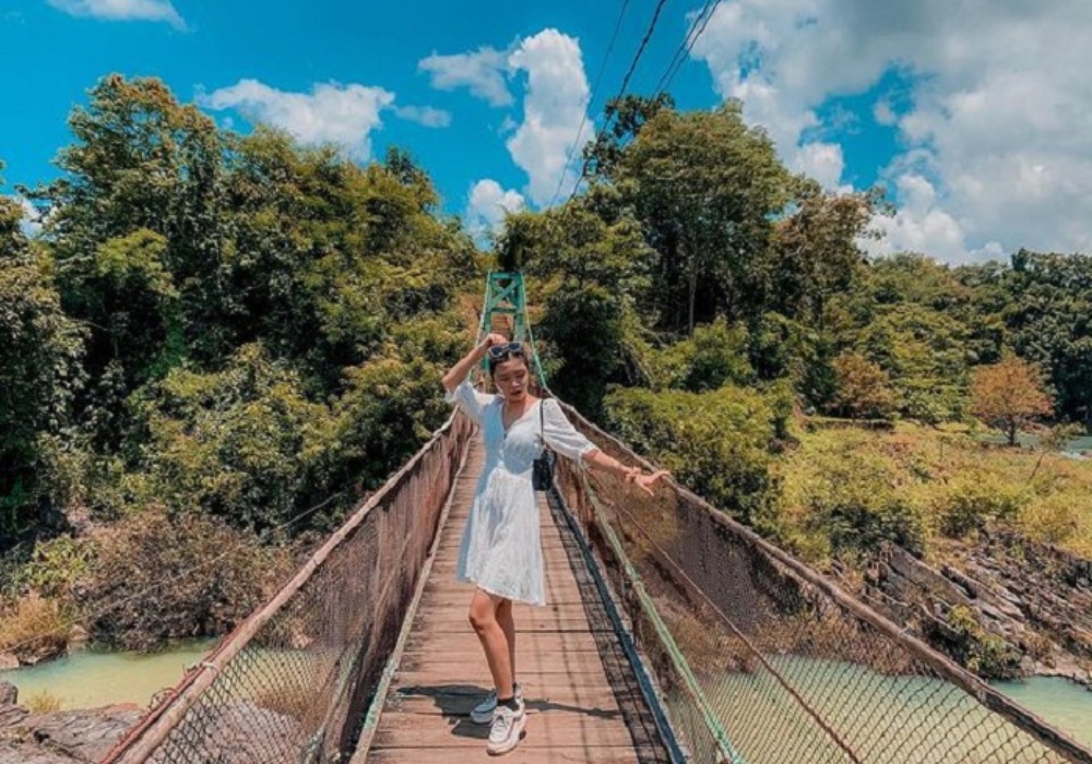 Cây cầu treo lịch sử không chỉ là lối đi mà còn là một thử thách đáng nhớ. Khi bước đi trên cầu, bạn sẽ cảm nhận rõ ràng độ lắc lư nhẹ, tạo cảm giác hồi hộp thú vị. Đổi lại, bạn sẽ có được góc nhìn toàn cảnh độc đáo về nơi hai dòng sông (Krông Ana và Krông Nô) hợp lưu.